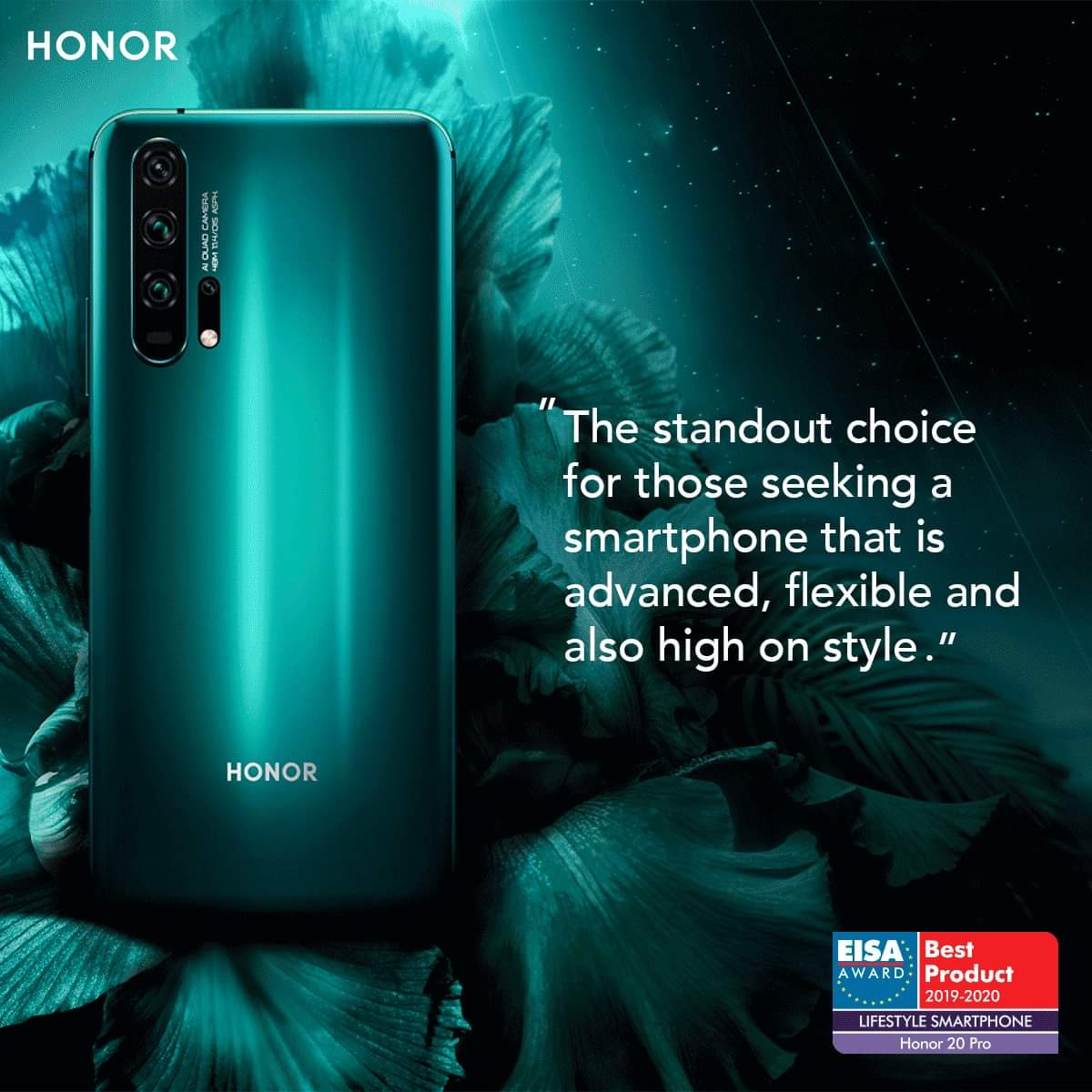 ووجهت الجائزة لتعطي Honor 20 PRO أفضل تصميم للهاتف المصنوع من الزجاج فى الخلفية والذى يعطى انعاكسًا رائعًا للألوان سواء في اللون الأسود الفانتوم والأزرق أيضًا، وذلك إلى جانب تمتع الهاتف باحترافية فى التصوير الديناميكي وكاميرا AI Quad الرائعة.