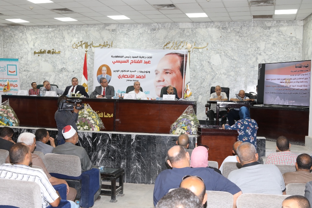 عقد الدكتور أحمد الأنصاري محافظ سوهاج، إجتماعًا لمتابعة خطة تنفيذ مبادرة "حياة كريمة" بالمحافظة، بحضور الدكتور أحمد عزيز رئيس جامعة سوهاج، والسيد عصام الدين الليثي سكرتير عام المحافظة، والمهندس طارق الوراقي السكرتير العام المساعد، والسيد رأفت السمان وكيل مديرية التضامن الإجتماعي، وعدد من وكلاء الوزارات، ورؤساء الوحدات المحلية، وممثلي 70 جمعية من المجتمع المدني، وذلك بديوان عام المحافظة.