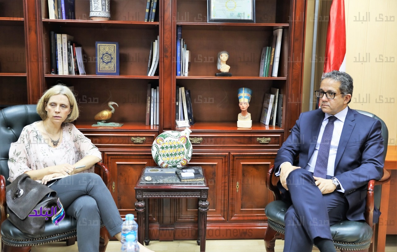 وزير الاثار يناقش مع سفيرة بلجيكا تجهيزات معرض تاريخ مصر الجديدة بـ البارون..صور