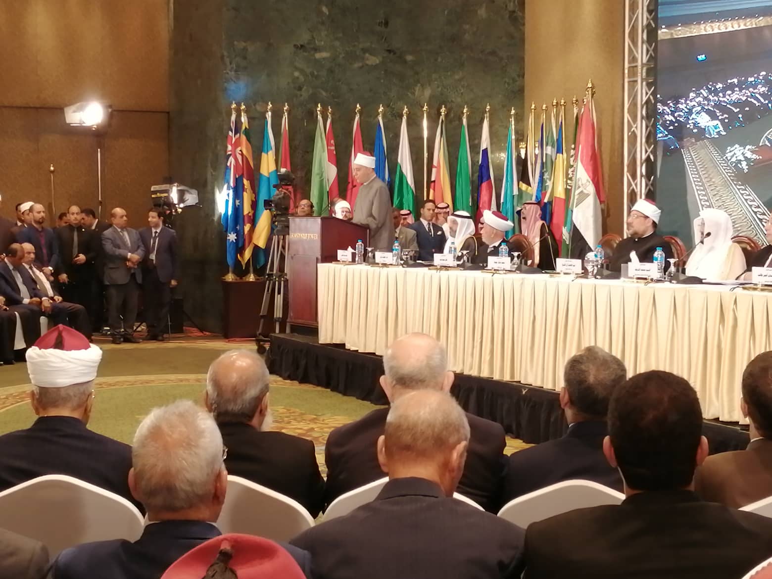 وقال الأمين العام خلال كلمته التي ألقاها نيابة عن فضيلة الإمام الأكبر أ.د/ أحمد الطيب _ شيخ الأزهر حول "فقه التعايش السلميّ، وأثره في بناء الدول واستقرار الأوطان"، إن هذا اللقاء يأتي في هذه الآونةِ ليُعززَ المفاهيمَ الصحيحةَ التي تُؤسس لبناءِ الدولِ الآمنةِ، والمستقرّةِ، والمتقدّمةِ، ويُفنِّدَ مفاهيمَ الجماعاتِ المتطرفةِ التي تهدف إلى الإرهابِ، وعدمِ الاستقرار، والتأخر عن الركبِ الحضاريِّ، وُصولًا إلى تفكيكِ الدول، وهدمِ الأوطان.