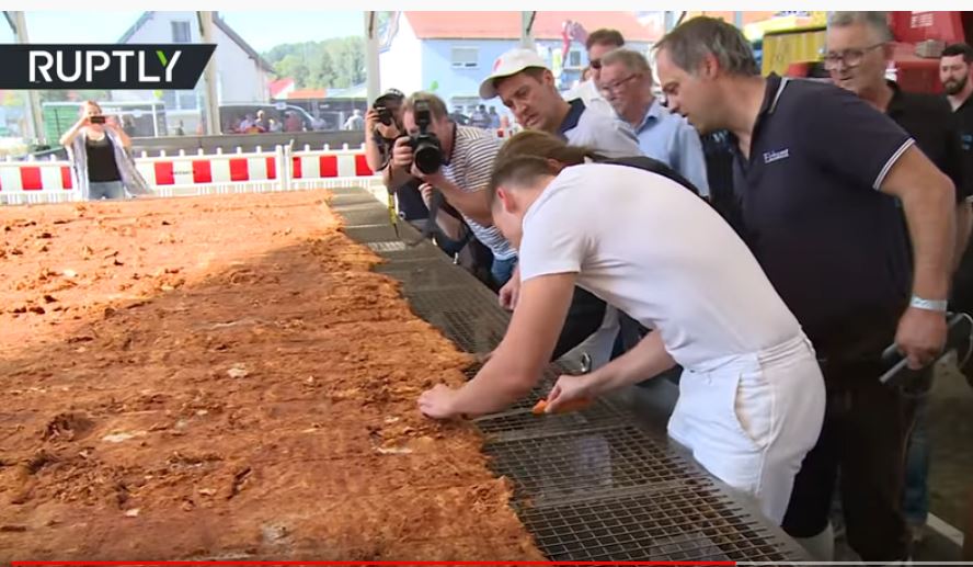عرضت فضائية "روسيا اليوم" لقطات لأكبر شريحة لحم "شنيتزل"، والتى تحطم رقما قياسيا عالميا، وسجلت فى موسوعة جينيس للأرقام القياسية.