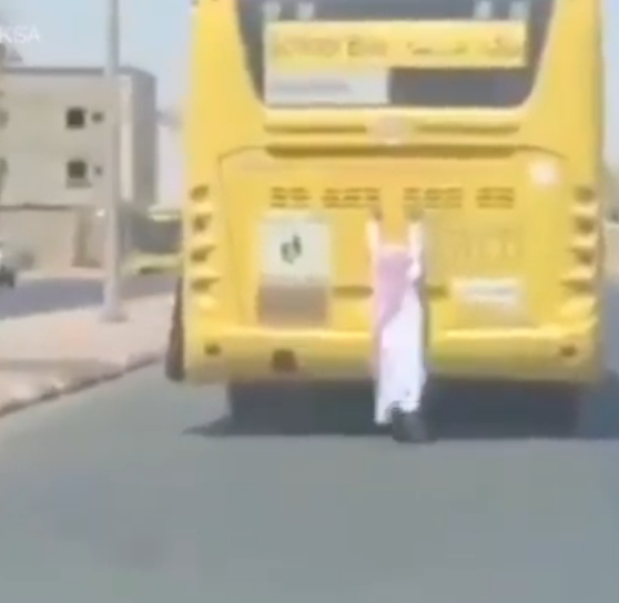 يظهر في الفيديو قيام ذلك الطالب بالتعلق في حافلة من الخلف شأنه شأن كثير من الطلبة الذين يقومون بتلك الحركات البهلوانية شديدة الخطورة.