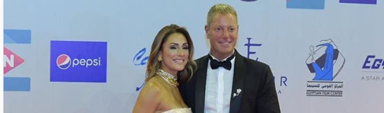 زوجة تامر هجرس بـ فستان لامع بحفل افتتاح مهرجان الجونة