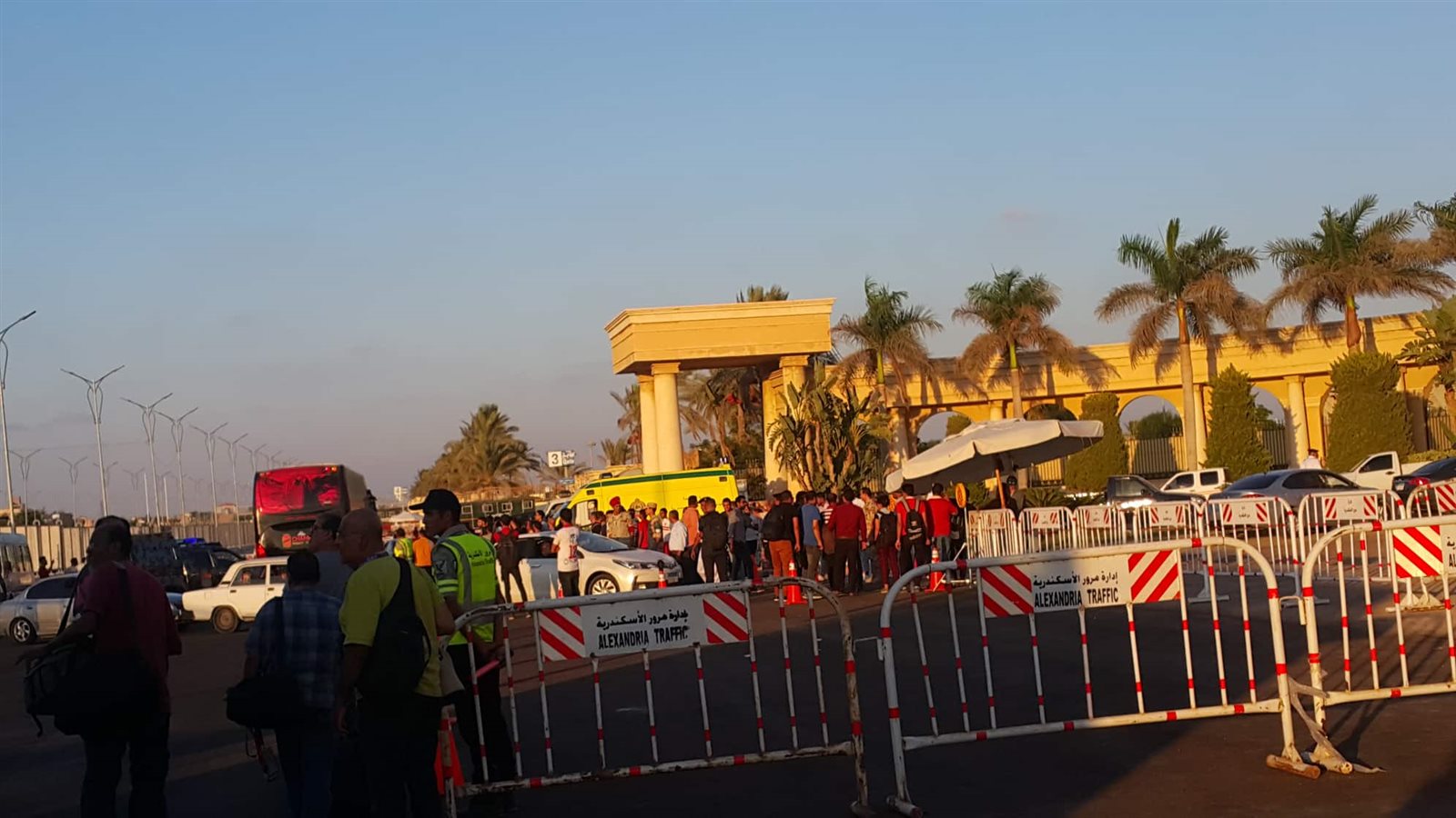 وصلت حافلة الفريق الأول لكرة القدم بالنادي الأهلي، ملعب برج العرب بالإسكندرية، استعدادا لمواجهة الزمالك المقرر لها في السابعة من مساء اليوم الجمعة، في بطولة السوبر المصري.