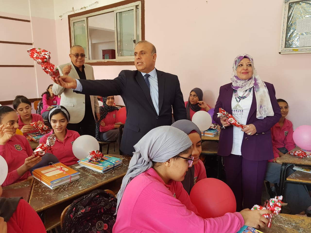 وتفقد عددا من فصول المدرسية وتقدم بالشكر لإدارة المدرسة على الجهود المبذولة فى استقبال الطلاب بالكتب المدرسية والهدايا، مما يبث الولاء والانتماء داخل نفوس الطالبات تجاه المدرسة.