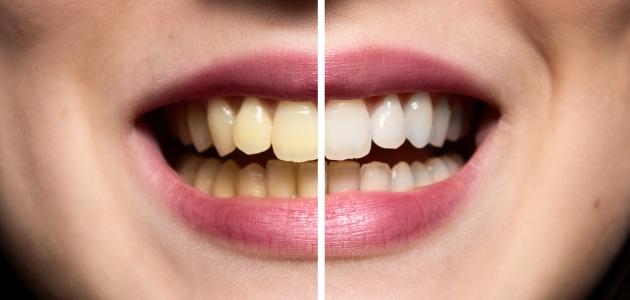 اخلطى الماء مع بيكربونات الصوديوم لكى نحصل على محلول نتمضمض به فيساعدنا على التخلص من البقع الصفراء