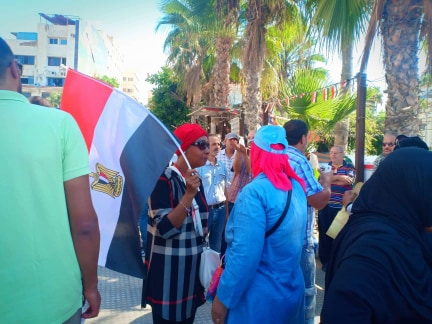 ورفع المواطنون الأعلام المصرية وصورا للرئيس عبد الفتاح السيسي، مرددين هتافات منها "تحيا مصر"، و"يعيش السيسي" ، و"معاك يا ريس"، و"الجيش والشعب ايد واحدة" و"لا للإرهاب".