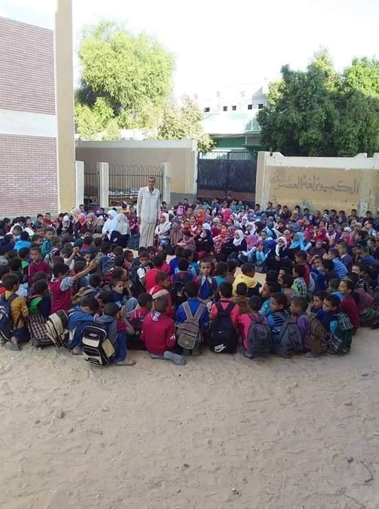 عجز في المعلمين .. تلاميذ ابتدائي يفترشون فناء مدرسة بأسيوط