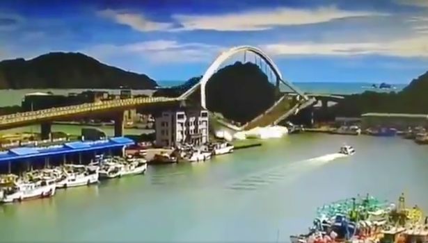 نشرت صحيفة "ميرور" البريطانية مقطع فيديو لأحد الجسور في تايوان لحظة انهياره وسقوطه في النهر، وسقوط كل السيارات التى عليه في النهر أسفل الجسر.