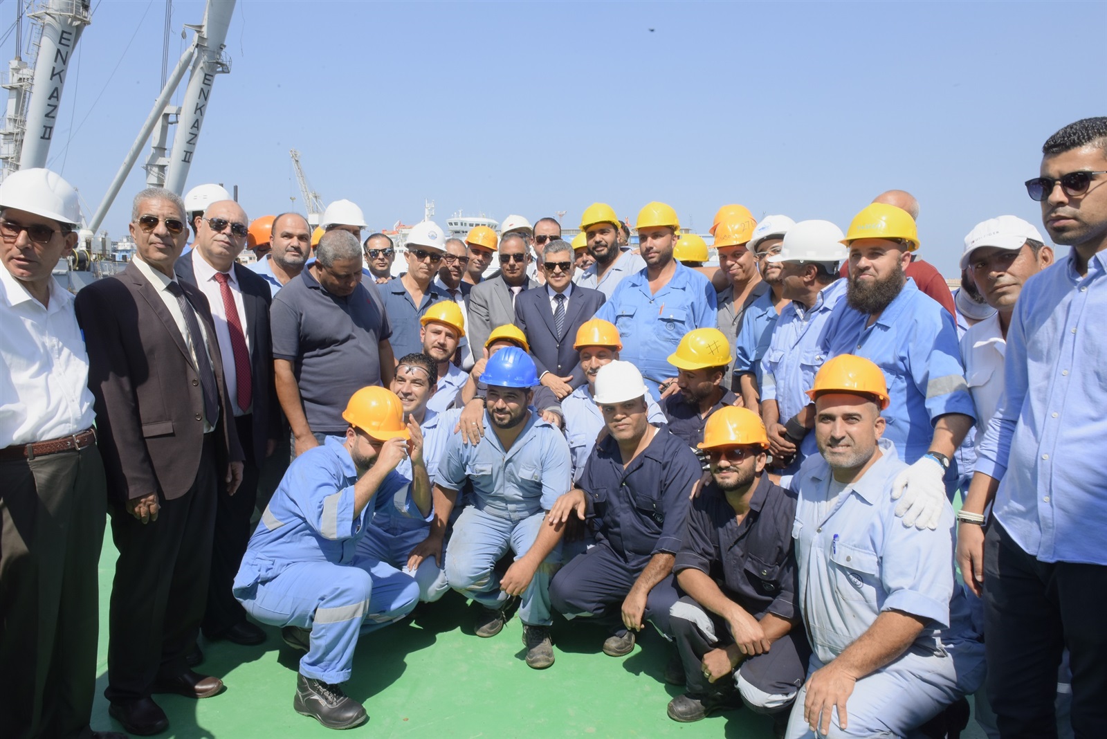 بدأت الجولة بتفقد رئيس الهيئة ترسانة بورسعيد البحرية يرافقه المهندس عادل فريد مدير إدارة الترسانات بالهيئة، والمهندس عادل شبراوي رئيس ترسانة بورسعيد، والمهندس سيد أبو الفتوح مستشار السيد رئيس الهيئة وعدد من قيادات الترسانة والعاملين بها.