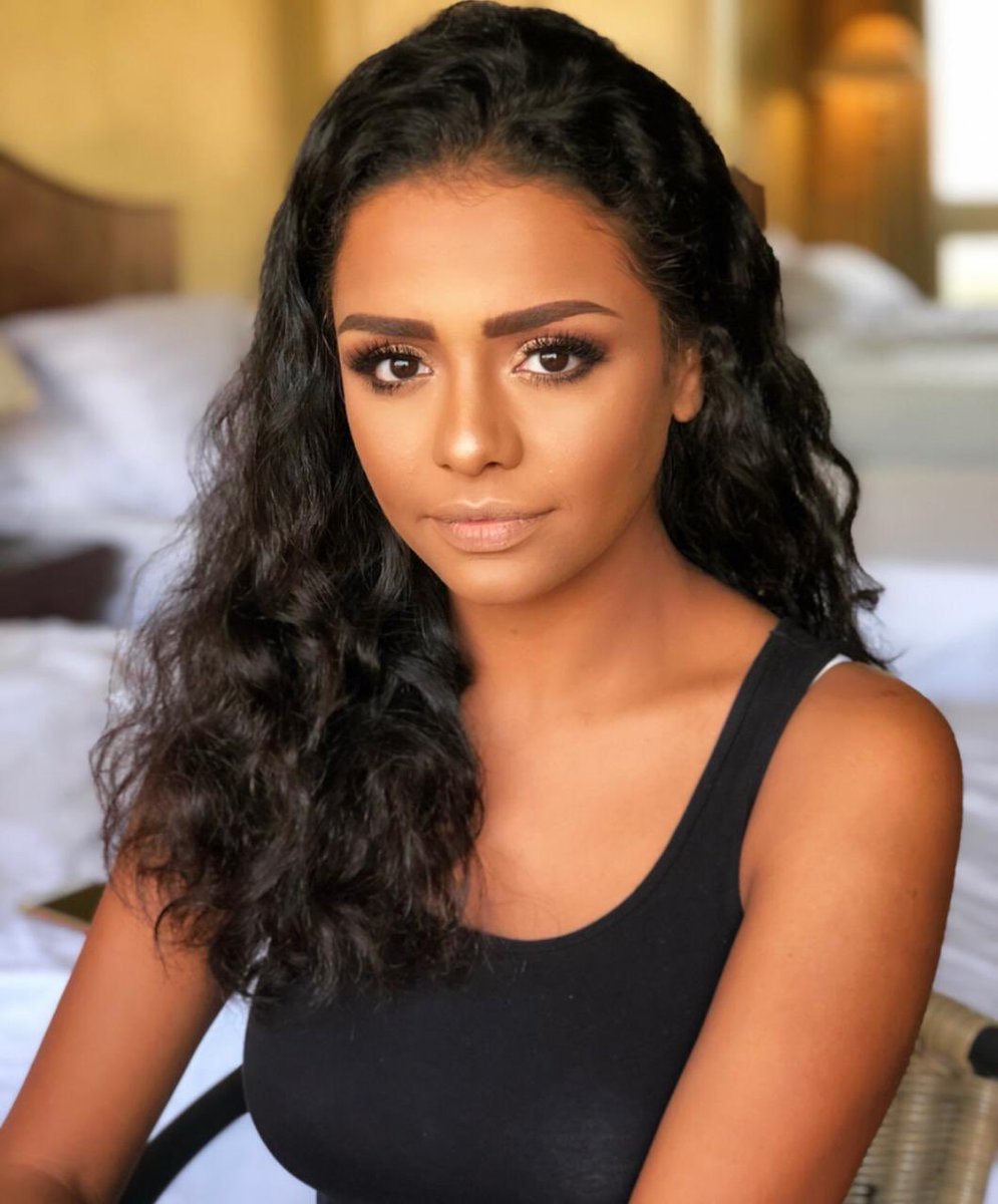 ولم تتكلف فى اقتناء الإكسسورات واكتفت بقرط رقيق وخاتم أنيق، ووضعت ميكب بالوان الترابية التي تناسب بشرتها البرونزية وأبرزت جمال عينيها بالماسكرا مع أحمر شفاه باللون الأحمر.