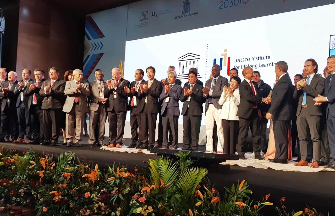 وحضر فعاليات الإحتفال رئيس كولومبيا إيفان دوكي والدكتورة ملك زعلوق مدير معهد التعلم لمنطقة الشرق الأوسط، وأيضًا السفير سامى سالم سفير مصر فى كولومبيا، وفدريكو جوتيريز عمدة مدينة ميدلين، بجانب أعضاء شبكة مدن التعلم والممثلين لـ 159 دولة على مستوى العالم ومرفت السمان مسئول التصال، بالإضافة إلى عدد كبير من ممثلى وكالات الأمم المتحدة والمنظمات الإقليمية والمنظمات غير الحكومية والشركات متعددة الجنسيات.