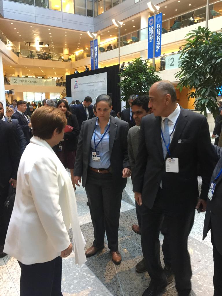 التقي طارق عامر، محافظ البنك المركزي المصري ومحافظ مصر لدي صندوق النقد الدولي، مع كريستالينغ جورجيينا، مدير الصندوق الجديد، علي هامش الاجتماعات السنوية لصندوق النقد والبنك الدوليين "اجتماعات الخريف 2019" بالعاصمة الأمريكية واشنطن.