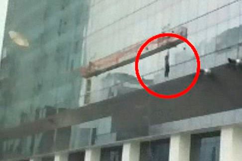 ويوضح الفيديو المنشور عبر صحيفة "ديلي ميل"، منظف النوافذ وهو يسقط من حافة السقالة ويحاول أن يستنجد بالمارة القابعين اسفله، لمنعه من السقوط من الارتفاع الشاهق.