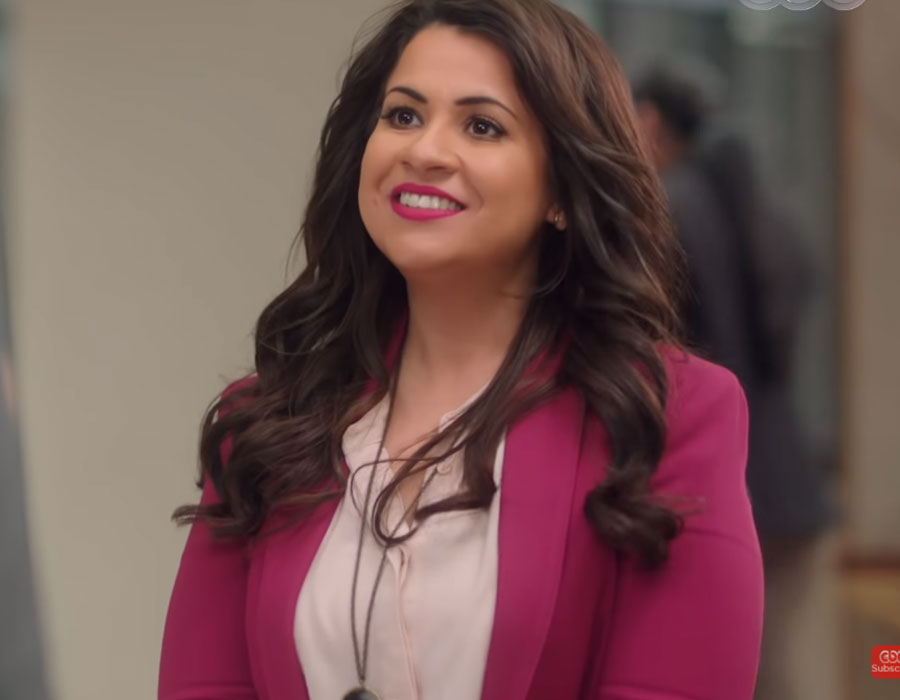 وظهرت بها إنجى وجدان، ببلوزة باللون الرمادى وبأكمام طويلة، وأبرزت إطلالتها البسيطة بمجموعة من الأساور، وسلسلة طويلة بألوان مبهجة