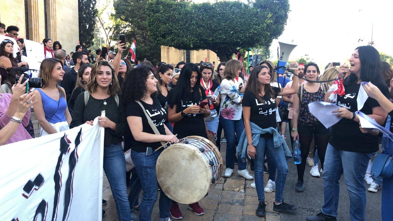 تزامنا مع الانتفاضة الشعبية في لبنان مسيرة دعما للنساء ومطالبهن، المسيرة انطلقت من المتحف الوطني الى ساحة الشهداء، وهتافات النساء تصدح في الساحات: "ثورة نسوية، ثوري يا بيروت ثوري على النظام الذكوري، بدنا نسقط الذكورية بدنا نسقط النظام" #لبنان_ينتفص pic.twitter.com/7diVzK67GL