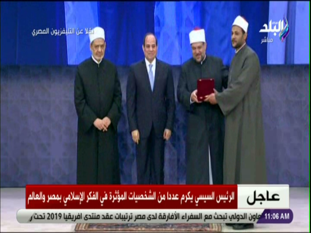 شاهد.. الرئيس السيسي يكرم شخصيات أثروا فى الفكر الإسلامي بمصر والعالم