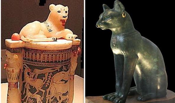 فقد ولي المصريون القدماء اهتمامًا كبيرًا بالحيوانات وتحديدًا القطط مع فرض عقوبات على إصابة أو قتل الحيوانات قبل حوالي 3000 قبل الميلاد، وعبدوا آلهة "القط" التي غالبًا ما تمثل نصف امرأة ونصف قط واسمه "باستيت"، كما أن أشهر هذه المخلوقات الأسطورية هو تمثال أبو الهول بالجيزة، وصُنع على هذا التمثال من الحجر الجيري، مع جسم أسد ورأس إنسان، على هضبة الجيزة التي تحمي الفرعون خوفو في هرم هائل خلفه.
