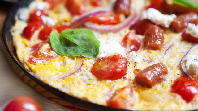 نقدم لكم البيض بالسجق على طريقة الشيف أميرة شنب والخبز المحمص مع الجبن بالخضراوات...