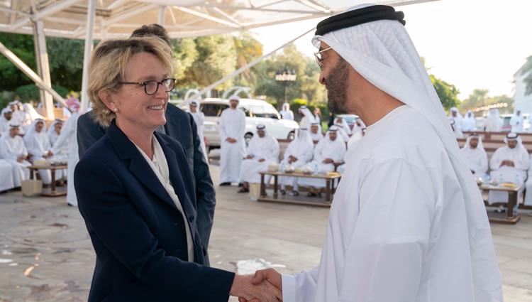 كما استقبل الشيخ محمد بن زايد آل نهيان السيدة كلود شيراك، ابنة الرئيس الفرنسي الأسبق الراحل جاك شيراك، التي تزور الدولة لحضور إطلاق إسم والدها على أحد الشوارع في أبوظبي.