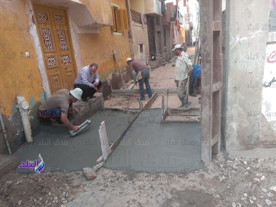 رصف أحد شوارع سيدي غازي في كفر الشيخ بـ البلاطات الخرسانية