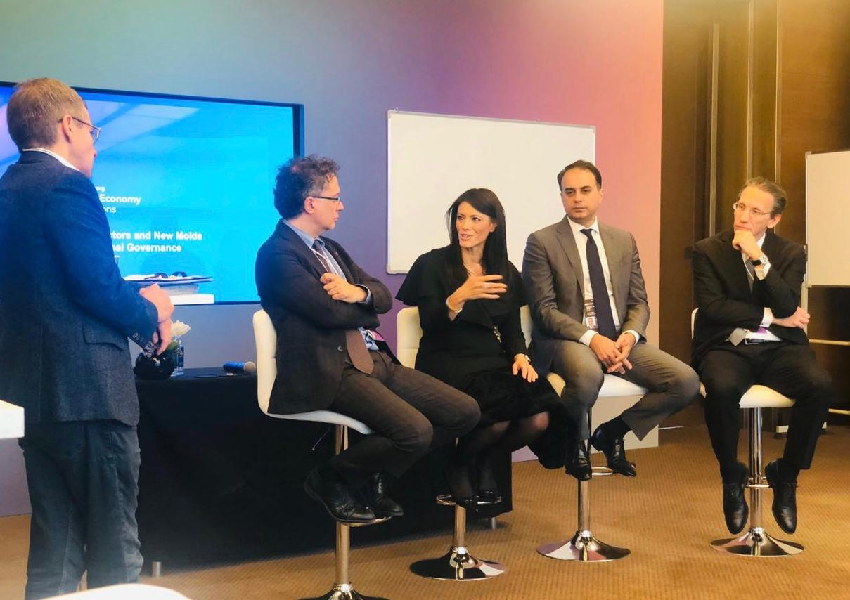 وأدار الجلسة إيان بريمير رئيس مجموعة Eurasia للدراسات والاستشارات في مجال المخاطر السياسية، وشارك في الجلسة الدكتور يورج كوكيس وزير المالية في الحكومة الألمانية، و أحمد سعيد نائب رئيس بنك التنمية الآسيوي، والبروفيسور ميشيل جيراكي نائب وزير التجارة العالمية السابق بالحكومة الإيطالية.