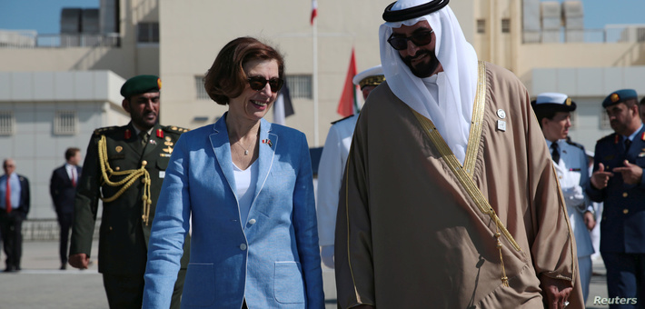 أعلنت وزيرة الدفاع الفرنسية "فلورنس بارلي" اليوم، الأحد، أن قاعدة بحرية فرنسية في أبوظبي ستعمل كمقر لبعثة بقيادة أوروبية لحماية مياه الخليج التي ستعمل قريبًا.