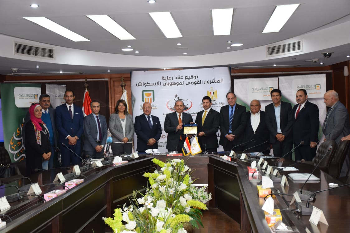 وذلك بحضور رئيس مجلس إدارة البنك الاهلي هشام عكاشة ، ورئيس الاتحاد المصرى للاسكواش عاصم خليفة، وامير وجيه المدير الفنى للمشروع القومى لموهوبي الاسكواش ، ونرمين شهاب الدين رئيس قطاع التسويق والتنمية المجتمعية بالبنك الاهلى المصري ، وهانى عبد الرؤوف مدير الرعاية بالبنك ، ومروان عاطف من ادارة التسويق بالبنك.