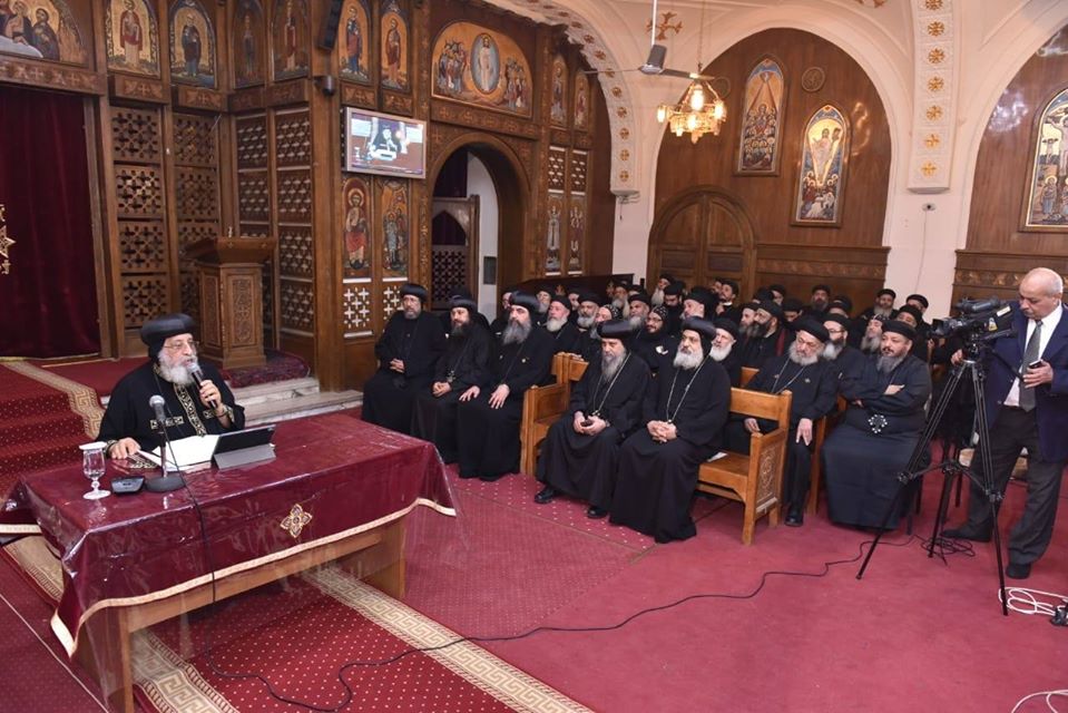 وحضر اللقاء مجموعة من الأباء الأساقفة أعضاء المجمع المقدس، والكهنة والشمامسة وشعب الكنيسة، حيث القى قداسته كلمة روحية للحاضرين بمناسبة صوم الميلاد المجيد والذى ينتهي في السابع من يناير المقبل.