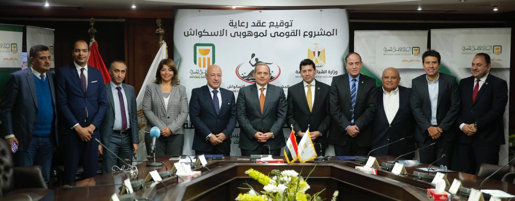 ضمن دوره المتنامي لدعم الرياضة المصرية، وفي إطار التعاون والتنسيق المصري، تم توقيع بروتوكول تعاون بين البنك الأهلي المصري ووزارة الشباب والرياضة بهدف إطلاق المشروع القومي لموهوبي الإسكواش.