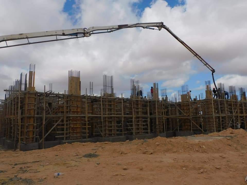 كما تم البدء في مبانى المعامل والورش والمدرجات والفصول بعد الانتهاء من تنفيذ أعمدة الدور الأرضى، ومساحة المبنى الواحد ما يقرب من 6000 م2.