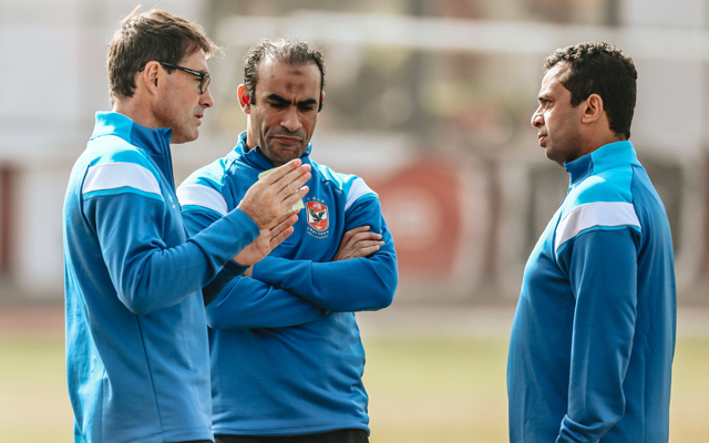 عقد رينيه فايلر المدير الفني للفريق الأول لكرة القدم بالنادي الأهلي جلسة مطولة مع سيد عبد الحفيظ مدير الكرة بالفريق على هامش مران الفريق صباح اليوم السبت على ملعب التتش بالجزيرة.