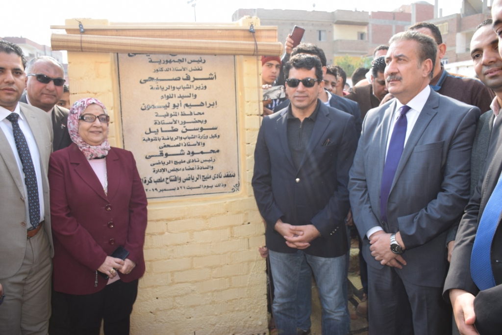وزير الشباب ومحافظ المنوفية يفتتحان صالة ألعاب وملعب نجيل صناعي