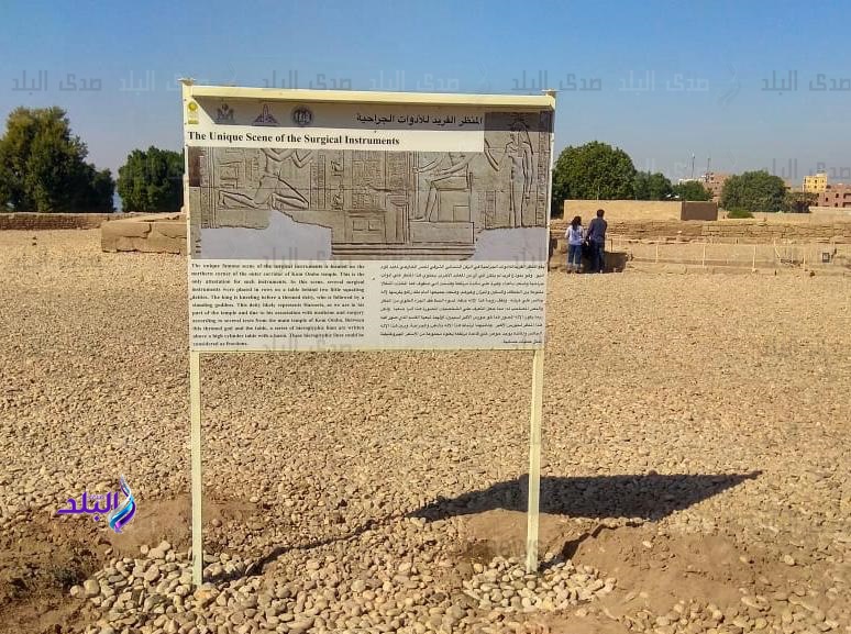 قامت وزارة السياحة والآثار بتصميم لوحة إرشادية مصورة للمناظر الأصلية الخاصة بنقش "أدوات الجراحة" المشهورة والموجودة بمعبد كوم أمبو بأسوان، ووضعها بالساحة الخارجية للمعبد. فى إطار خطة الوزارة للحفاظ علي المواقع والمناطق الأثرية المختلفة والنهوض ورفع كفاءة الخدمات السياحية بها،