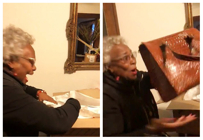 الجدير بالذكر أن فتاة من ولاية "ميشيجان" الأمريكية تُدعى "زاهريا بالمر"، وهي حفيدة هذه السيدة، قامت بمشاركة الفيديو عبر حسابها على موقع "تويتر" في وقت سابق من الأسبوع الجاري، وتظهر فيه جدتها وهي تقوم بفتح هدية عيد ميلادها، وفور رؤيتها للحقيبة شرعت في الصراخ بشكل هستيري وسارعت بإخراجها وأخذت تقفز فرحًا حاملة إياها، وبدت وكأنها لا تصدق عينيها، وكان رد فعلها مؤثرًا حقًا.