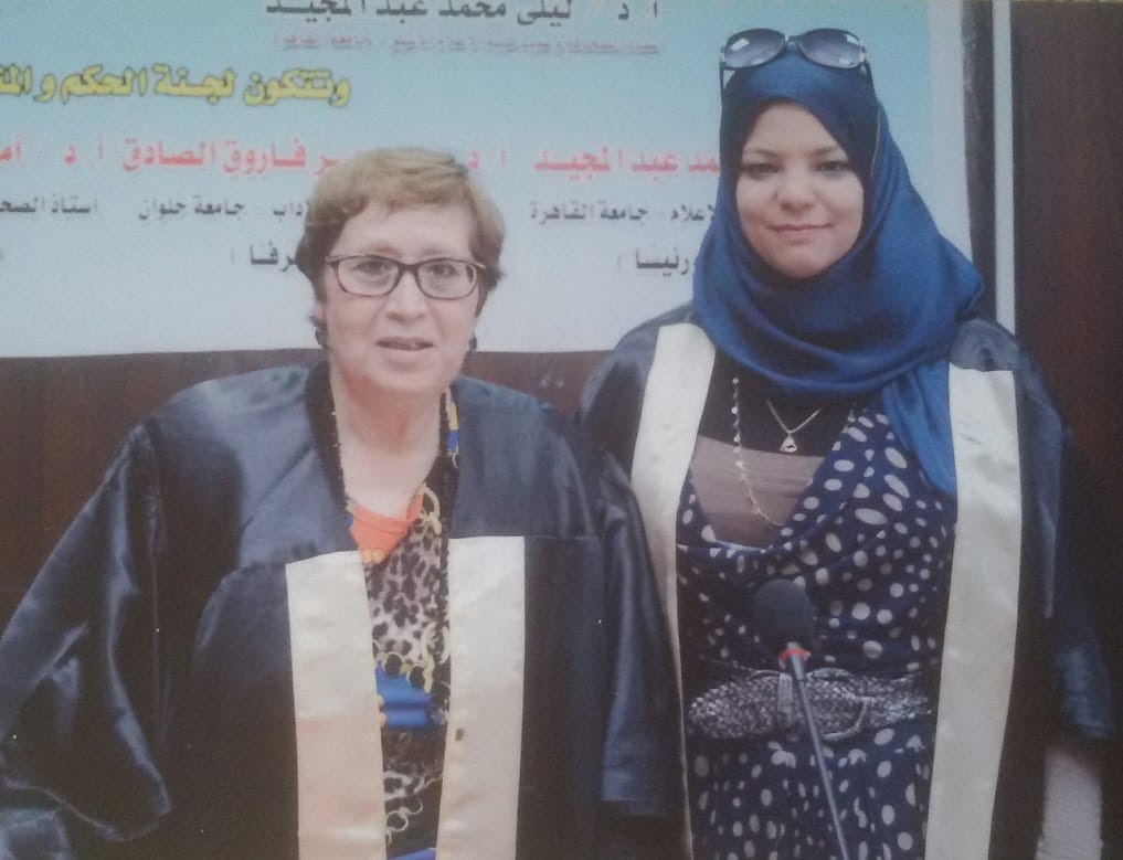 وحصلت الباحثة على درجة الدكتوراه في «الإعلام الإليكتروني»، من قسم الإعلام بجامعة حلوان، تخصص صحافة، بتقدير ممتاز.