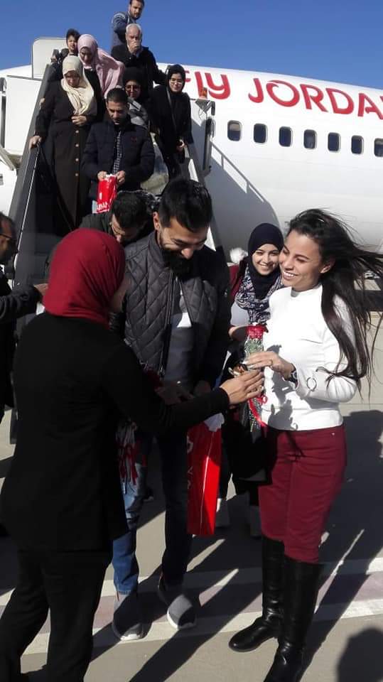 وحرص فريق العلاقات العامة بالمطار على استقبال الركاب القادمين على متن الرحلة الأردنية، وتم استقبالهم بالورود والهدايا التذكارية، والإشراف على انهاء اجراءات وصولهم وخروجهم من المطار.