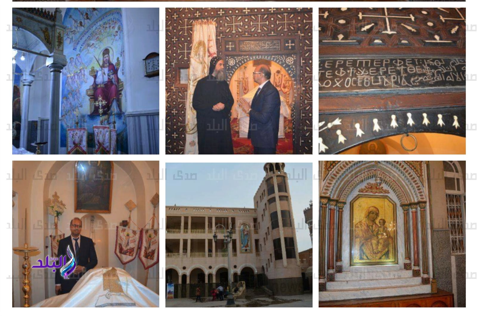 وأوضح أن كنيسة الحصن لها مذبح واحد والصحن مقسم إلى قسمين بواسطة عامودين يتوسطهما حاجز خشبى وهما عامودين منقولين من معابد قديمة، وبالكنيسة منجلية وهى حامل خشب يوضع عليه كتاب القطمارس الخاص بالقراءات الكنسية تعود للقرن 12م،وباب كنيسة الحصن وأبواب الغرف على نفس تصميم أبوب كنيسة السيدة العذراء الأثرية.