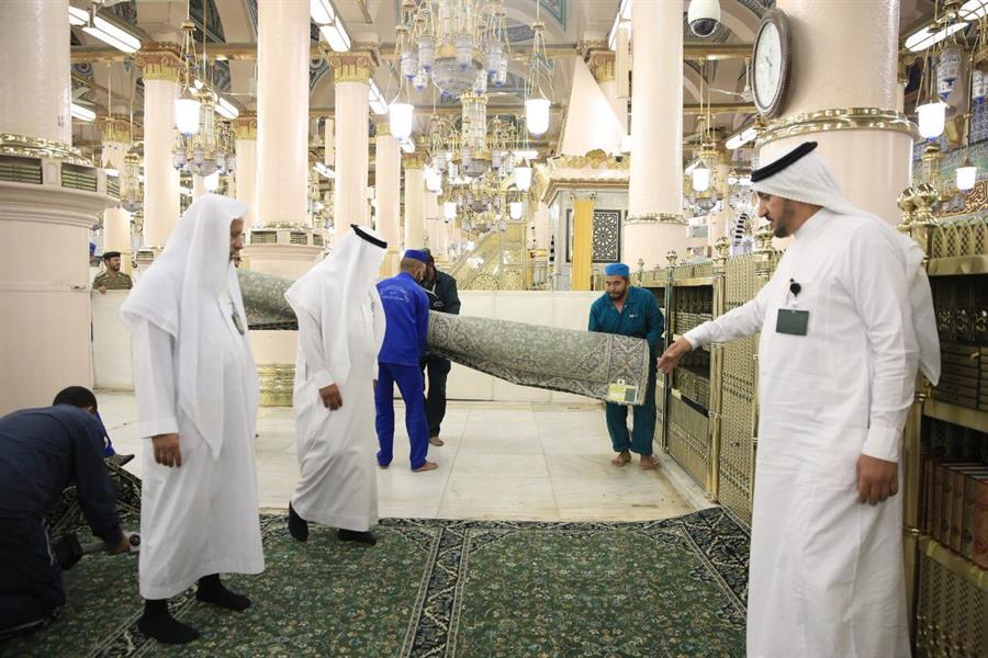 بدأت الرئاسة العامة لشؤون المسجد الحرام والمسجد النبوي الشريفان، بتبديل جميع السجاد الموجود بالمسجد الحرام وساحاته بسجاد جديد نظرًا لما يشهده المسجد الحرام خلال هذه الأيام من كثافة في أعداد المعتمرين والمصلين والزوار.