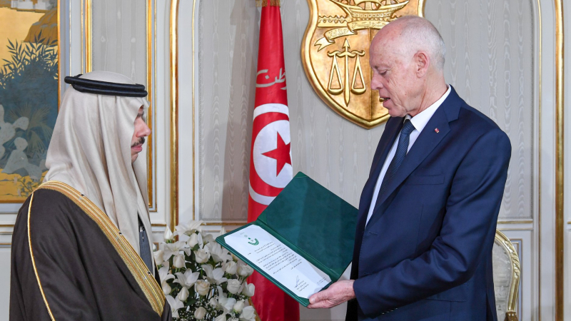وقالت وسائل إعلام تونسية إن رئيس الجمهورية، قيس سعيّد، استقبل بقصر قرطاج، وزير الخارجية السعودي، الأمير فيصل بن فرحان آل سعود، يرافقه وزير الدولة لشؤون الدول الإفريقية، أحمد بن عبد العزيز قطان.