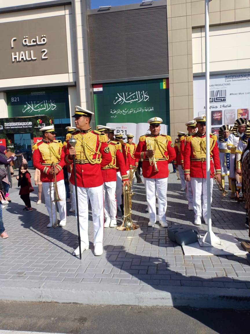 استقبلت فرق العزف المخصصةللشرطةصباح اليوم الموافق السبت 25 يناير، زوار معرض القاهرةالدولي للكتاب فى دورته ال 51 على انغام موسيقى عسكريةللترحيب بالجمهور.