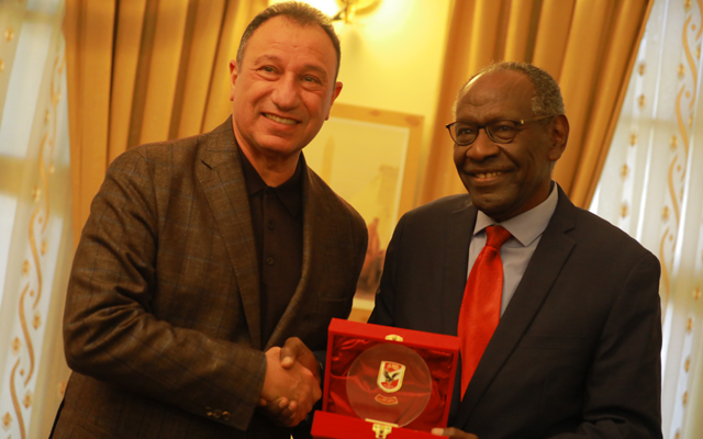 حرص محمود الخطيب، رئيس النادي الأهلي، على تكريم علي جاجرين، نجم الكرة السودانية ونادي الهلال، وذلك خلال زيارته الرسمية اليوم إلى السفير المصري في السودان، حسام عيسى، التي شهدت حضور كابتن منتخب السودان الأسبق.