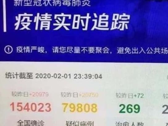 وبحسب موقع "news.com" الأسترالي، في مساء يوم الأحد نشرت تينسنت على موقع تعقب الفيروسات أن عدد الحالات المؤكدة تم تسجيله عند 154,023 حالة - أي أكثر من عشرة أضعاف الرقم الرسمي في ذلك الوقت.