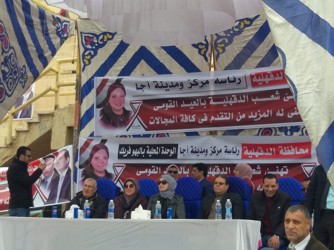 جاءتالاحتفاليةبحضور رحاب المزين رئيس مركز ومدينة أجاوذلك بساحة مركز شباب مدينة أجا وبحضور علاء الشربينى وكيل مديرية الشباب للشباب والنائب فوزى فتى عضو مجلس النواب عن مدينة اجا وعدد من القيادات التنفيذية والشعبيةوالمواطنين .