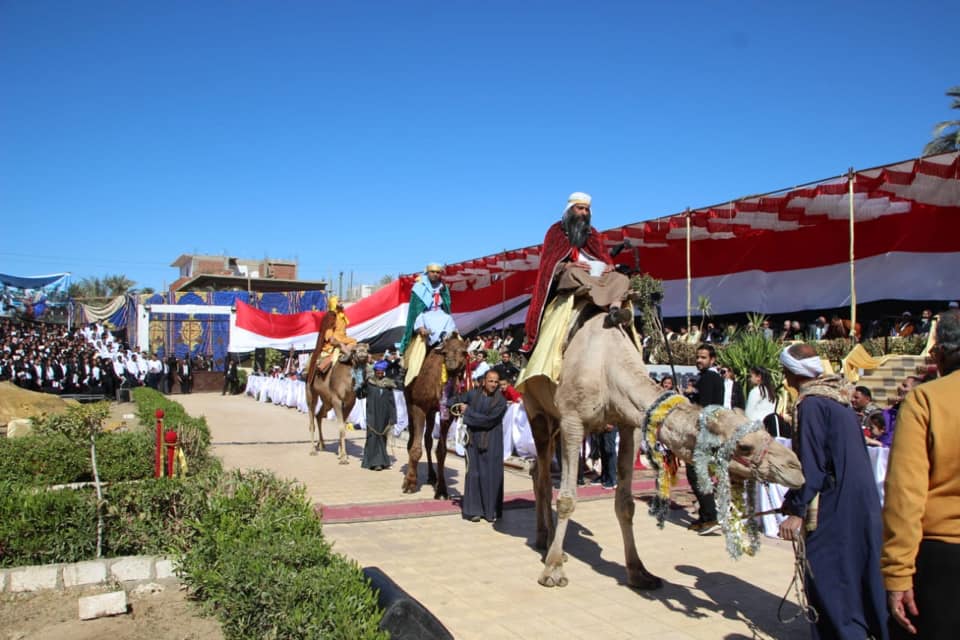كما قدّم المسرح القبطي بالإيبارشية عرضً مسرحيًّا يجسد قدوم المجوس من المشرق ليسجدوا للملك المولود ومقابلتهم لهيرودس الملك "وهروب العائلة المقدسة إلى مصر" وقتل هيرودس لأطفال بيت لحم. وإسكتش عن رحلة العائلة المقدسة في ملوي مرورًا بالأشمونين وديروط أم نخلة وبير السحابة وكوم ماريا بدير أبوحنس موقع الاحتفال.
