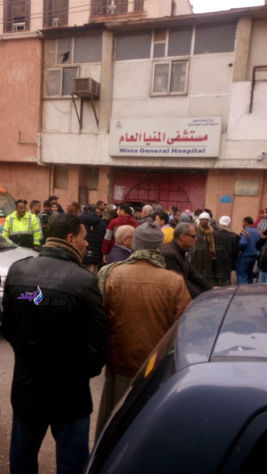 توافد المئات من اهالي منشأة الدهب بمركز المنيا علي مشرحة مستشفى المنيا العام في انتظار تصاريح الدفن لذويهم في الحادث المروع الذي اسفر عن وفاة 11 شخصا واصابة 10 اخرين في تصادم ميكروباص وسيارة ربع بالطريق الدائري ماقوسة صفط الغربية بمركز المنيا والمؤدي الي الطريق الصحراوي الغربي.