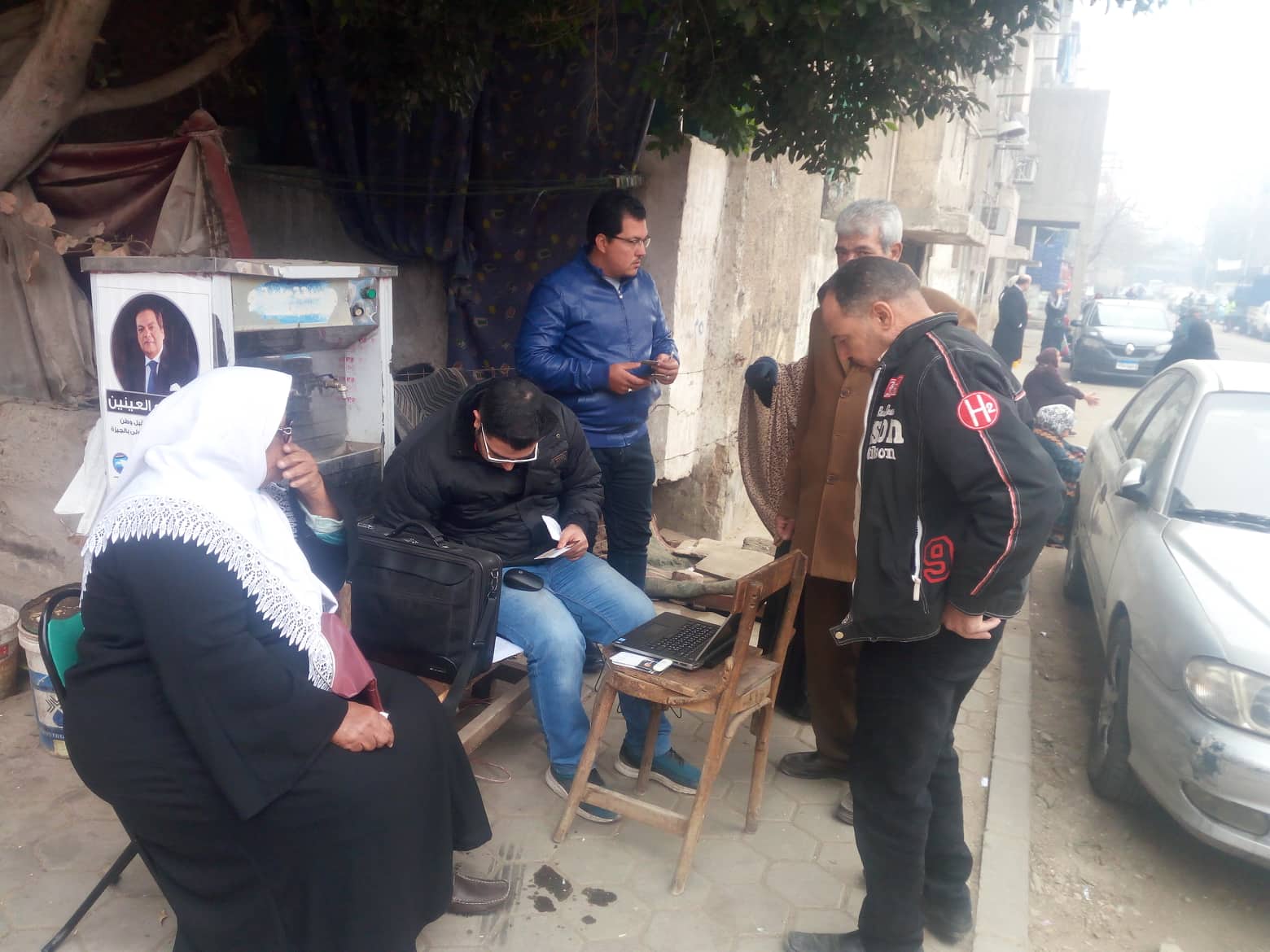 تواجد عدد من الشباب أمام اللجان الإنتخابية فى مدرسة التجارة الثانوية بنات، حيث استخدموا اللاب توب لمساعدة الناخبين فى التعرف على لجانهم الإنتخابية للإدلاء بصوتهم فى الإنتخابات التكميلية بدائرة الجيزة،والتي يخوضها رجل الأعمال والصناعة محمد أبو العينين، نائب رئيس حزب مستقبل وطن للشئون النيابية ومرشح الحزب، ورمزه "القلم" رقم 4.