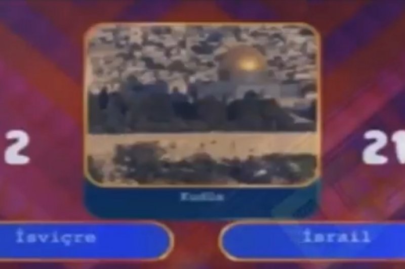 أعاد مغردون تداول مقطع فيديو لبرنامج مسابقات أطفال على التلفزيون التركي الحكومي، كانت أحد أسئلته الموجهة للصغار هل القدس عاصمة لإسرائيل أم سويسرا، لتأتي الإجابة الصحيحة من مقدم البرنامج: إسرائيل.