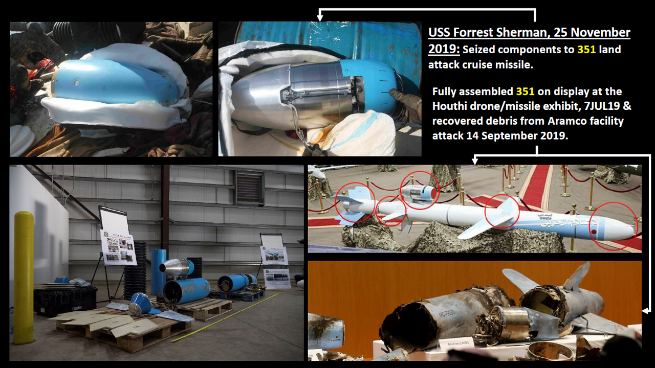 وعرضت البنتاجون صورا للشحن المحتجزة التي كانت موجهة إلى مليشيات الحوثي الإرهابية في اليمن - بحسب العربية.