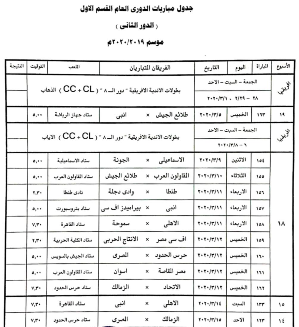 كما أعلنت مواعيد مباريات الإسبوعين الـ19 و 20 ، وتعلن اللجنة بقية مواعيد الأسابيع اللاحقة على ضوء موقف الأندية المصرية في البطولات الأفريقية.